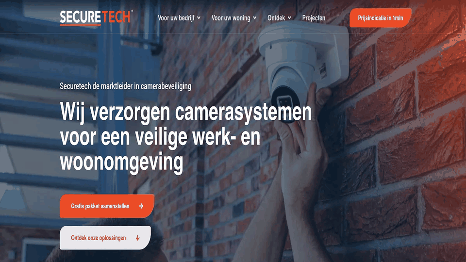 Securetech is geen klein bedrijfje - ze zijn marktleider in camerabewaking met meer dan 14.000 particuliere klanten en 5.000 zakelijke opdrachtgevers door heel Nederland. Hun aanbod is helder: professionele bewakingssystemen zonder maandelijkse abonnementskosten, vanaf €1.100 inclusief BTW. Vandaalbestendige camera's, IP67-gecertificeerd, 24/7 opname.